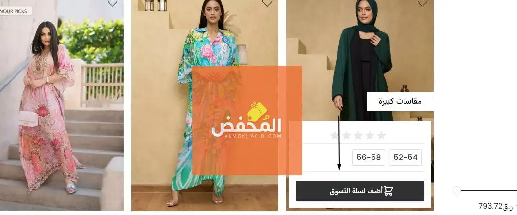 قسم الملابس: يمكنك عن طريق هذا القسم الحصول على أكثر من نوع من الملابس المناسبة للمرأة العربية، فيمكنك الحصول على العبايات، الفساتين، البناطيل، البلايز والقفطان، ملابس الشاطئ المناسبة أيضًا وهناك أطقم متناسقة ومميزة.
