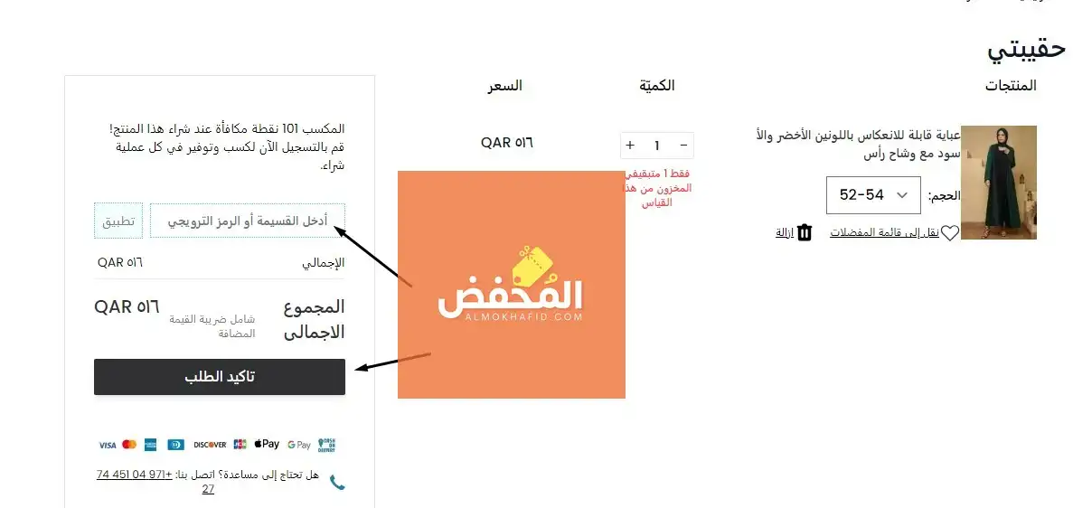الآن ما عليكي إلا الضغط على زر تأكيد الطلب لكي تتم العملية بنجاح وبدون أي مشاكل وبالخصم الذي يقدمه الكوبون.