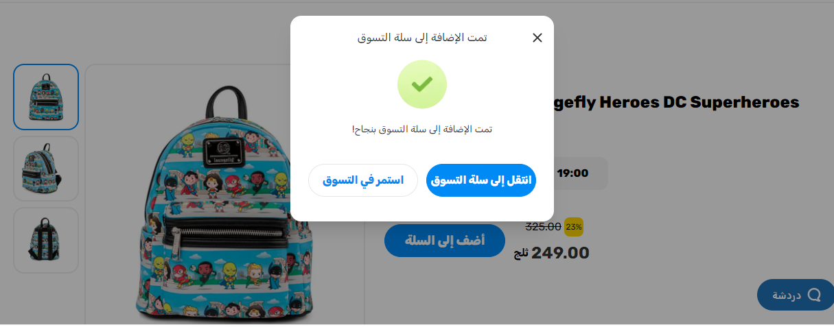 الانتقال إلى السلة للتأكد من إضافة المنتج والعدد واستكمال الشراء.