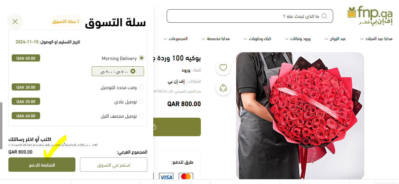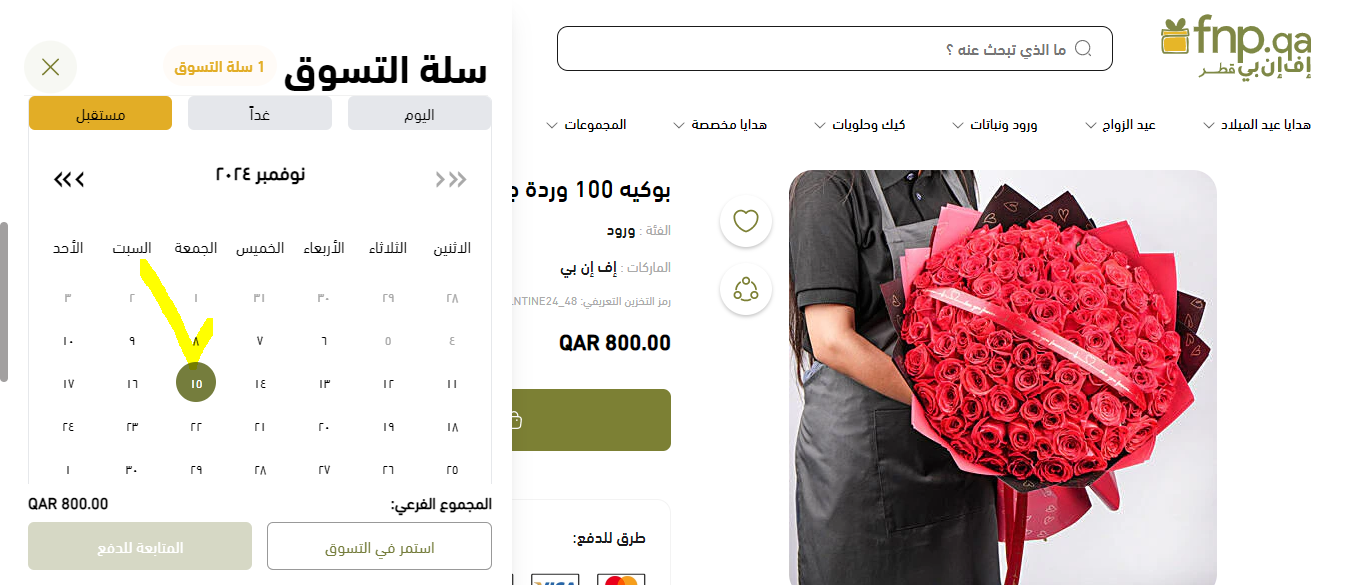 اضغط على سلة التسوق واستكمل البيانات المطلوبة مثل تحديث تاريخ التوصيل.