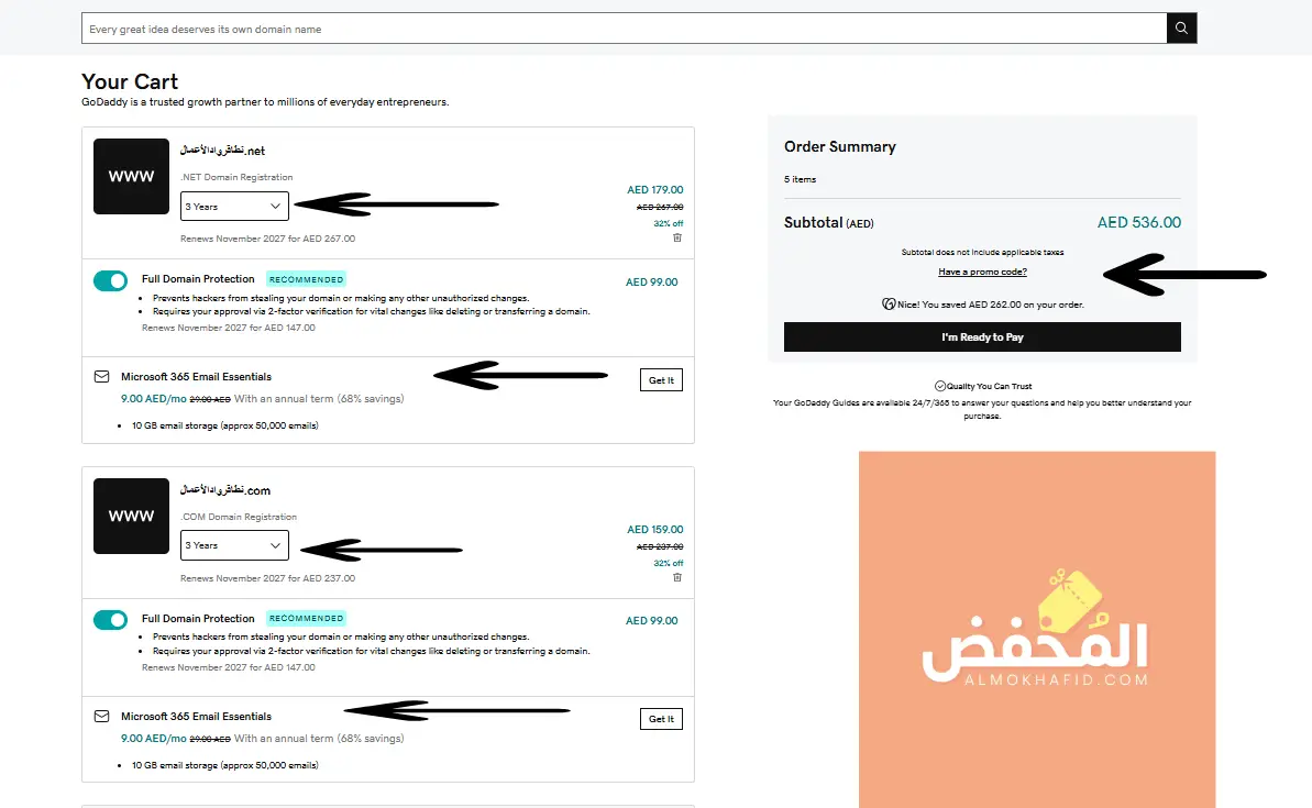 تعد منصة جودادي شريكك المثالي لتسجيل النطاقات واستضافة المواقع بحلول متكاملة، لا تفوت فرصة استخدام كود خصم جودادي قطر للحصول على أكبر التخفيضات لشراء اسم النطاق الخاص بك.