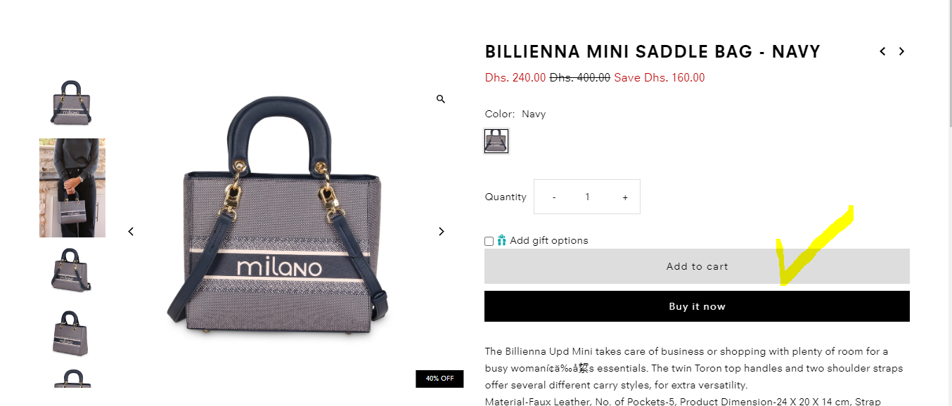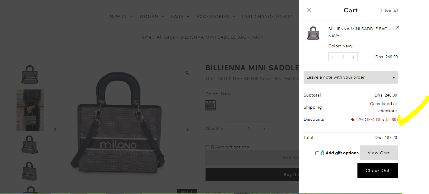 يُستخدم كود الخصم لتوفير الأموال عند الشراء من موقع ميلانو قطر سواء للأحذية أو الحقائب أو الإكسسوارات، حيث توجد مجموعة من التخفيضات الكبيرة التي يمكن الحصول عليها والتي تصل إلى 50% عن طريق اتباع الخطوات التالية: