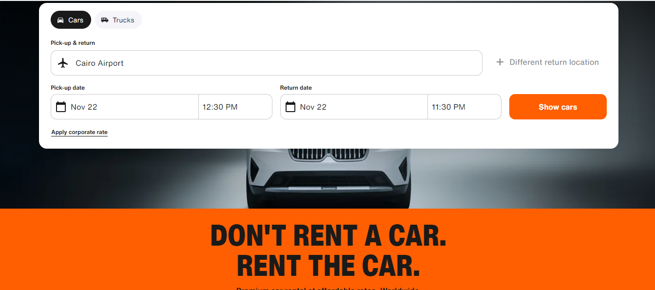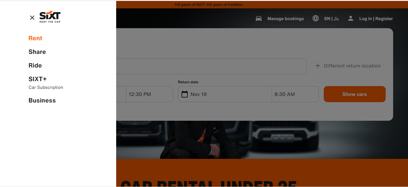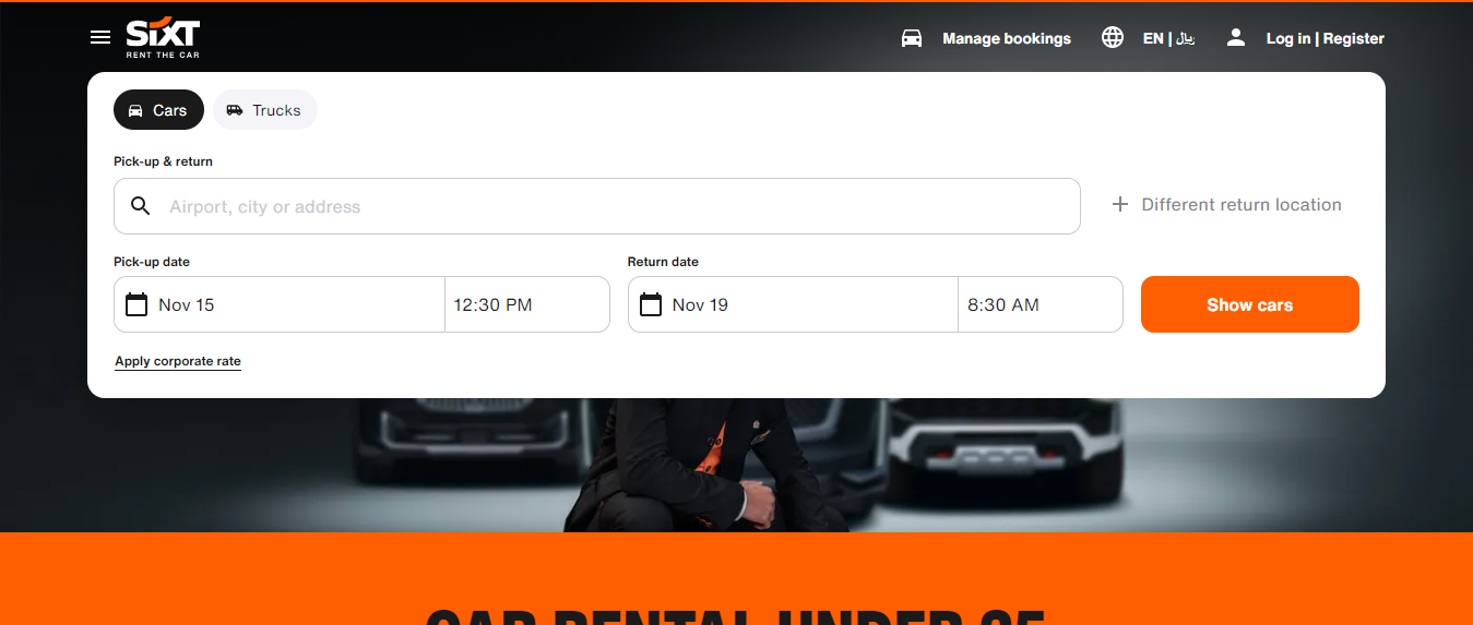 للحصول على إحدى السيارات من كافة الماركات والأنواع وأيضاً الألوان التي يحتاجها العميل، يمكن الدخول إلى الموقع الإلكتروني SIXT لتأجير إحدى السيارات عن طريق اتباع الخطوات التالية مع الاستفادة من أكواد الخصم المتاحة:
