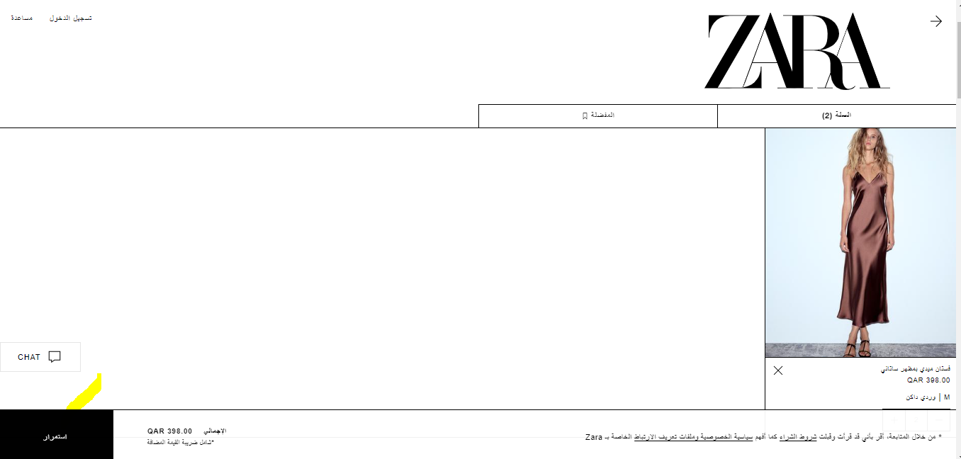 توجه فورًا إلى موقع زارا وسجل الدخول أو اختر التصفح كضيف.